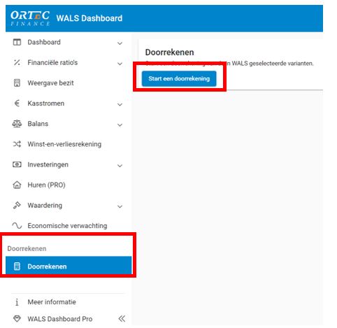 Figuur 2 – Stap 2 - On-demand doorrekenen in het WALS Dashboard