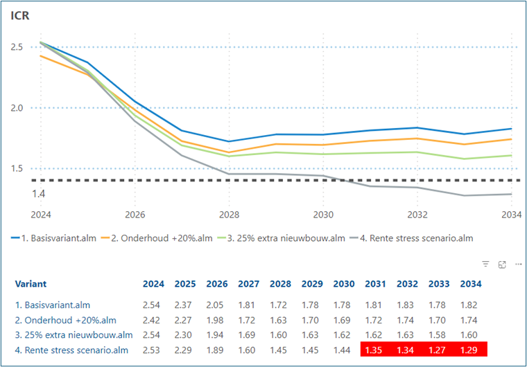 In het Dashboard kan je in één oogopslag zien wat de effecten zijn van bijvoorbeeld een rentestress scenario t.o.v. jouw dPi op de financiële kengetallen!